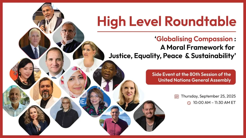 The High-Level Roundtable will present a strong case for a compassion driven approach in global and local governance for a just, equitable, peaceful and sustainable world.